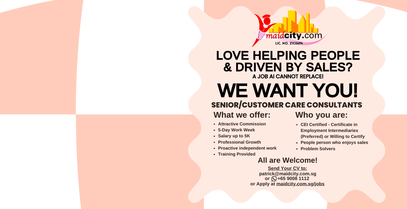 “Thanks to Serene from Maidcity who was incredibly efficient and proactive in recommending to us resumes & helping us get our new helper quickly (within 2 weeks). She truly understood our needs, provided valuable advice, and kept us informed thru the whole process. She even arranged for the work pass to be sent via Grab, knowing we were heading to Malaysia the next day. Her attention to detail made the process smooth and stress-free. Highly recommend her services!”