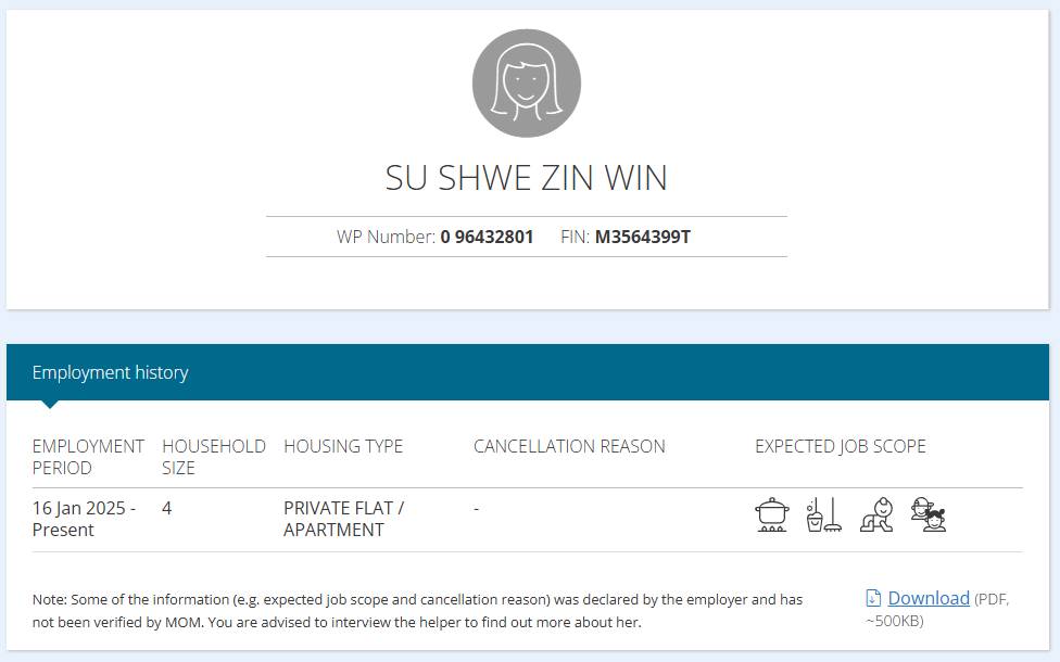 * Take note that this information is generated automatically and should only be taken as reference and not to be solely relied on when hiring a maid.