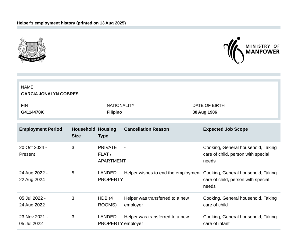 * Take note that this information is generated automatically and should only be taken as reference and not to be solely relied on when hiring a maid.