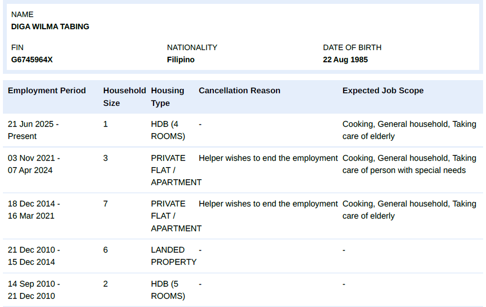* Take note that this information is generated automatically and should only be taken as reference and not to be solely relied on when hiring a maid.