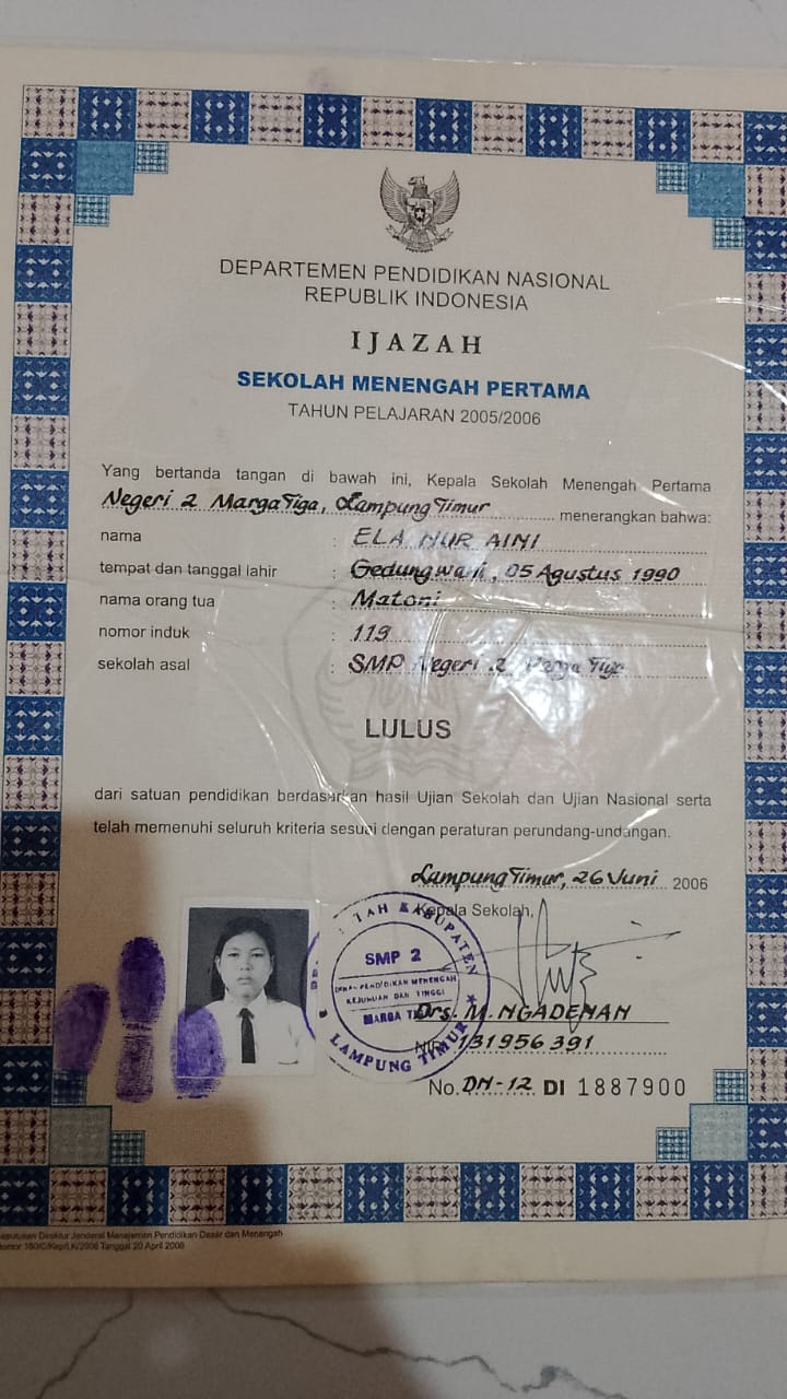 | Name | ELA NUR AINI |