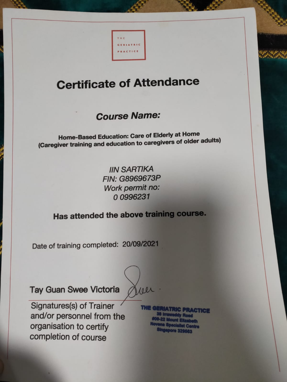 - Reason for leaving: Finished contract and ah gong passed away and ah ma still healthy.