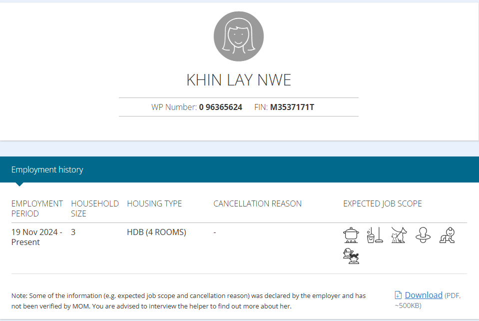 * Take note that this information is generated automatically and should only be taken as reference and not to be solely relied on when hiring a maid.