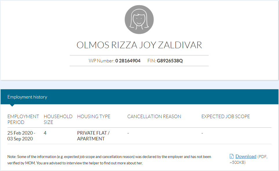 * Take note that this information is generated automatically and should only be taken as reference and not to be solely relied on when hiring a maid.