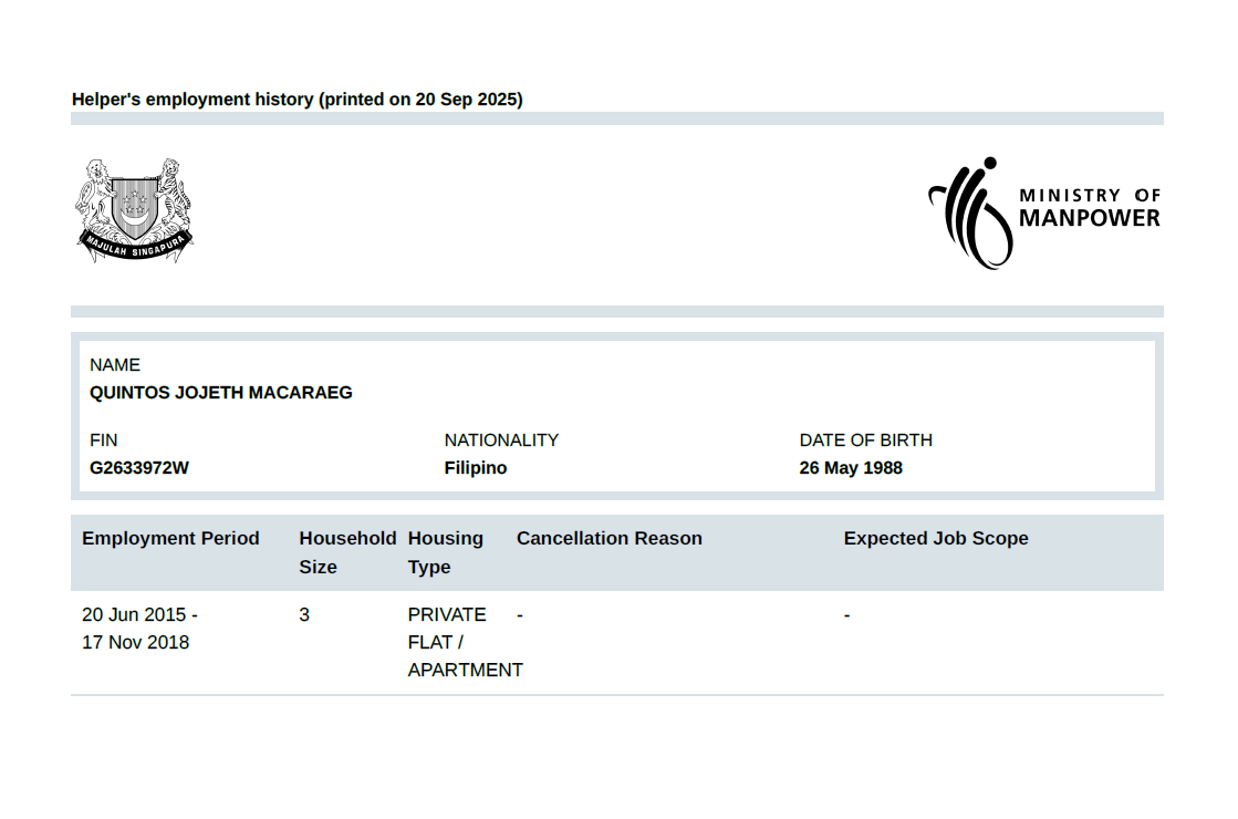 * Take note that this information is generated automatically and should only be taken as reference and not to be solely relied on when hiring a maid.