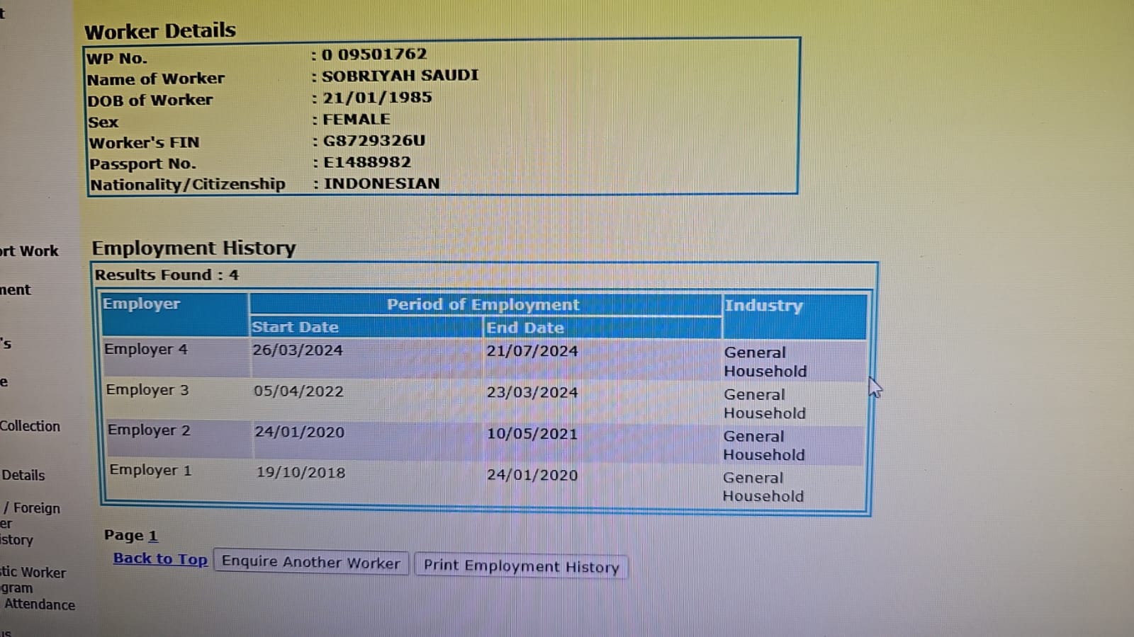 - Reason for leaving: EMPLOYER HIRE TWO HELPER, AFTER THAT EMPLOYER DIVORCE, CAN ONLY HIRING ONE HELPER.