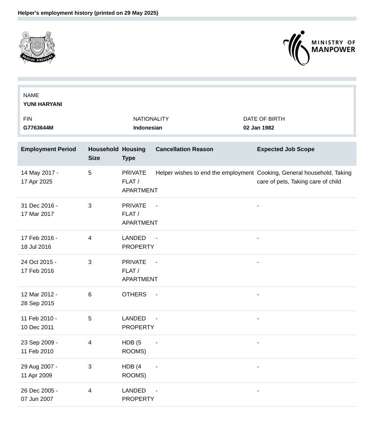 * Take note that this information is generated automatically and should only be taken as reference and not to be solely relied on when hiring a maid.