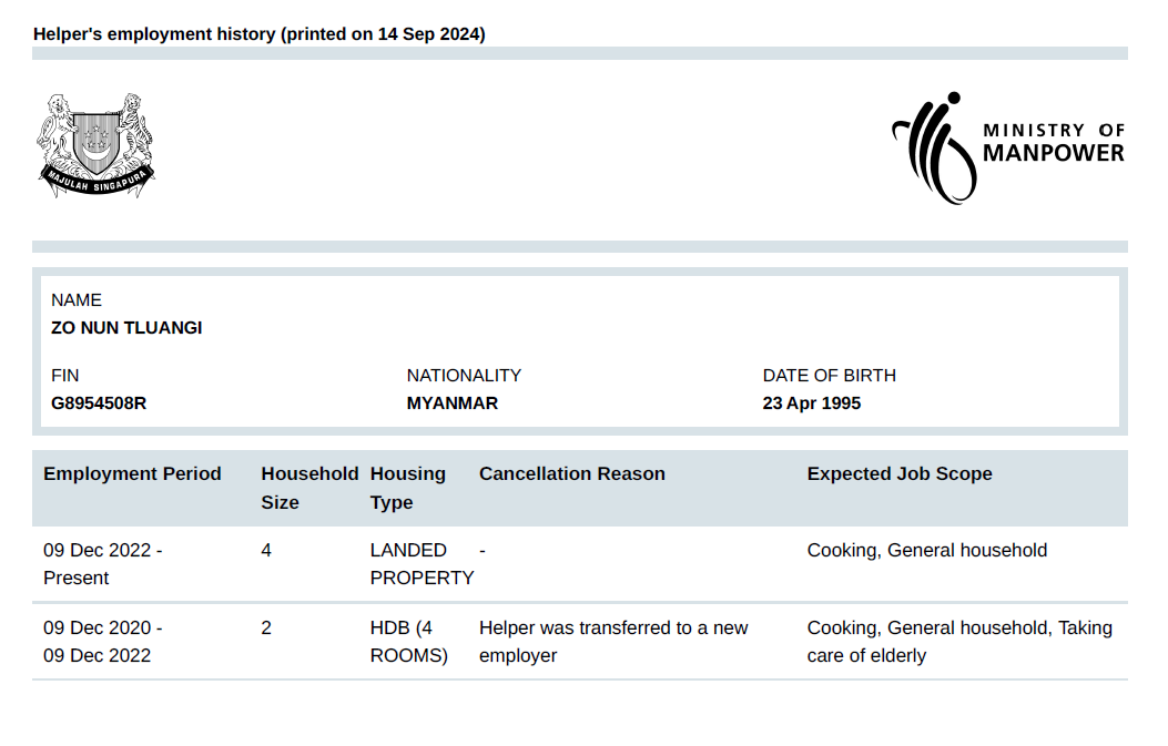'ZO NUN TLUANGI, from Myanmar, has experience in general household work such as cleaning, laundry, ironing, etc. They are responsible, confident, and trustworthy. They speak English and are good with both children and the elderly.'