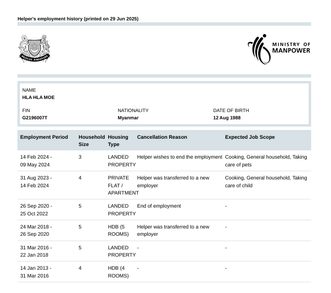 * Take note that this information is generated automatically and should only be taken as reference and not to be solely relied on when hiring a maid.