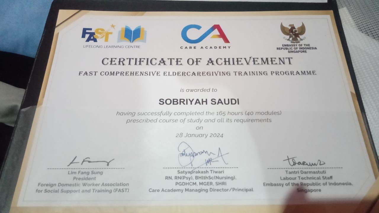 'SOBRIYAH SAUDI, from Indonesia, has experience in general household work such as cleaning, laundry, ironing, etc. They are responsible, confident, and trustworthy. They speak English and are good with both children and the elderly.'