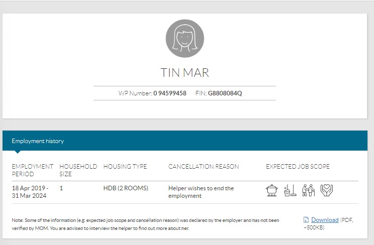 * Take note that this information is generated automatically and should only be taken as reference and not to be solely relied on when hiring a maid.